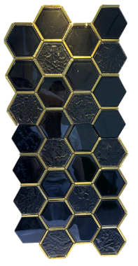 Élevez le style de vos murs avec cette mosaïque noire et dorée au design luxueux et texturé, idéale pour un rendu élégant et contemporain.
