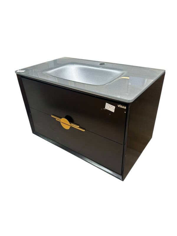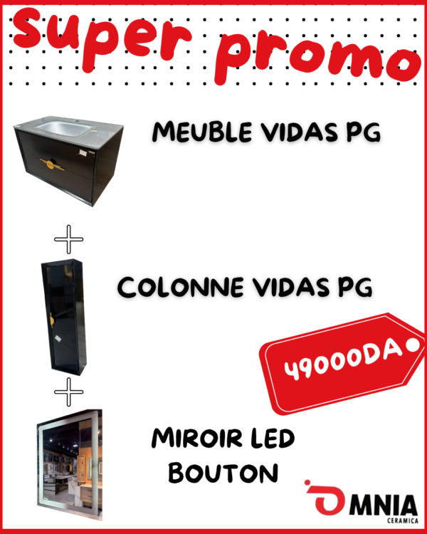 Ce lot comprend un meuble de salle de bain Noir P Gold, une colonne Milan assortie et un miroir LED lumineux, le tout à seulement 49 000 DA !