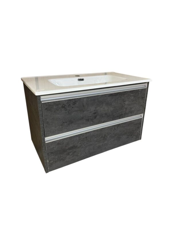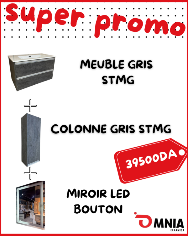 Ce lot comprend un meuble de salle de bain STMG GRIS Foncé, une colonne grise assortie et un miroir LED lumineux, le tout à seulement 49 000 DA !