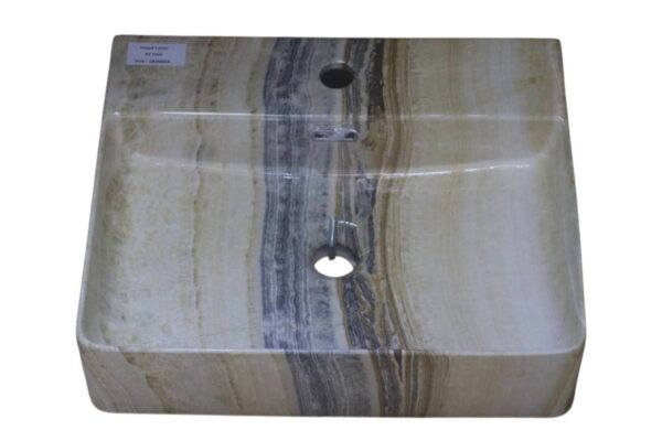 Ajoutez une touche naturelle et élégante à votre salle de bain avec cette vasque à poser en effet marbré beige.